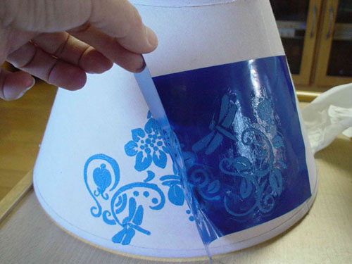 6)颜色填完把模板撕掉,图案就留在灯罩上啦!