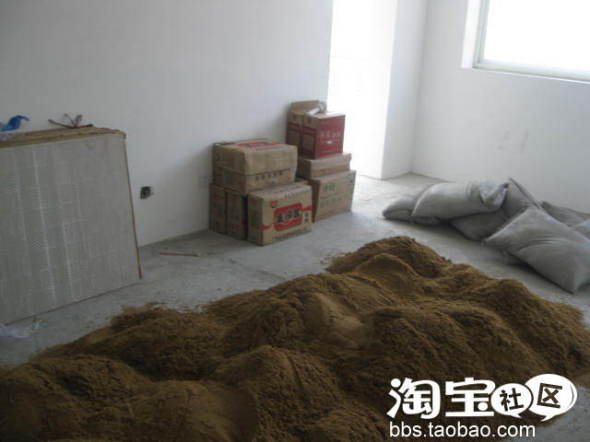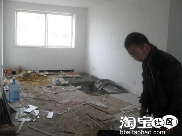 一片狼籍啊,看到空的那两块地砖了没,气死人了,其它地方都铺好了,就差这两块,还没现货了,要几天到,不然早就都铺好了,最最怕的是再来的地砖会有色差啊,这可是在客厅,若是在卧室还好的,记住了朋友们,要先铺客厅啊!惨痛的教训!
