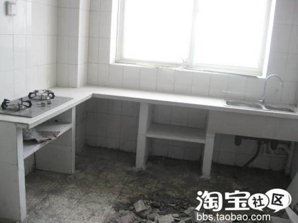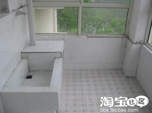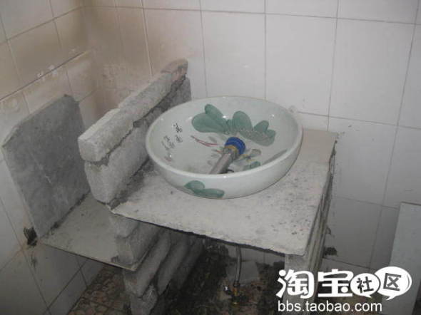 看看开发商装的台盆,我不要,把它卸了,用砖砌了一个