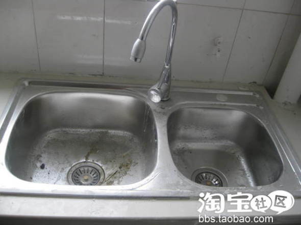 网购的水槽(请大家忽略那脏兮兮的样子,干净了会很美的),冷热龙头买了两个,另一个用在卫生间台盆了,超便宜,一共才249,老板很好,还为我省了运费。