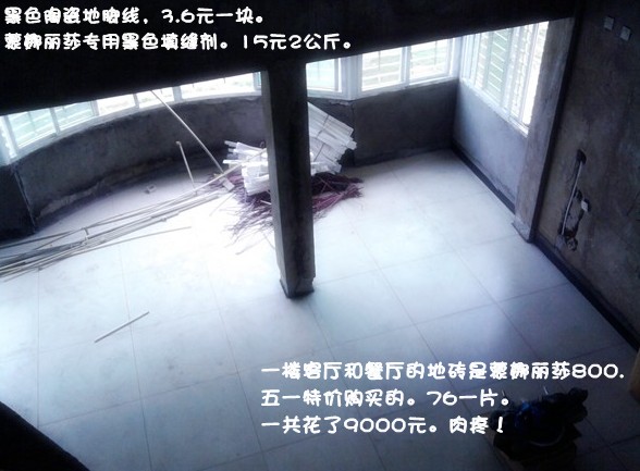因为卧室准备铺复合地板,所以在客厅地砖铺完之后,就把5个卧室用水泥倒平了,师傅告诉公公要多浇水,公公就开始使劲泼,现在导致整个屋的墙壁都渗水,,害公公被婆婆骂。。一开始不准备用防水涂料,因为房子已经很老了,我家楼上也住好一段时间了,没做过防水,也没见楼上渗水。可是由于家里的水电改造都是公公自己动手的,卫生间的地撬了之后,开始有渗水的现象了,所以想想还是弄防水吧。。导致厨房卫生间的砖迟迟不能铺。。先是要用水泥填平,然后涂上防水涂料。最近天气不争气,天天下雨。啥也做不了。最近在网上还看到有些朋友说,防水涂料必须要在地面干透的情况下涂。。郁闷了。。现在我家已经给涂上了。不知道有没有用!!!郁闷郁闷!!!木板已经买回好几天了,师傅还不能开工,说墙面不干做了柜子会发霉的。还是等等吧。太阳公公,行行好吧,快点把我家晒干啦。。。因为这些种种,公公整天被婆婆骂,说什么没事找事,逞能,叫请人不请,偏要自己弄。公公也怪委屈的,公公说,我整天没日没夜的干,一句好话也没有。。所以装修还是要做好功课呀!!!不知道我现在补还来得及不。大鼻是我们家最懒的了!!对装修不上心,只能做些苦活,让他去买东西最不放心了,他比我还不懂!!没长大的孩子!!