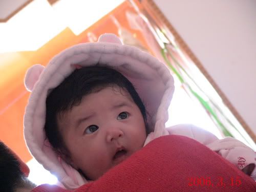 24天大,还有6天满月,都是姥姥抱着的,姑娘的眼睛很好使,到处看,眼神跟着人走跟着手走
