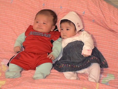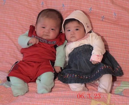 不多说了,先看照片,然后我再慢慢编辑,大家看看哪个是丫头哪个是小子,很容易看出来的~~