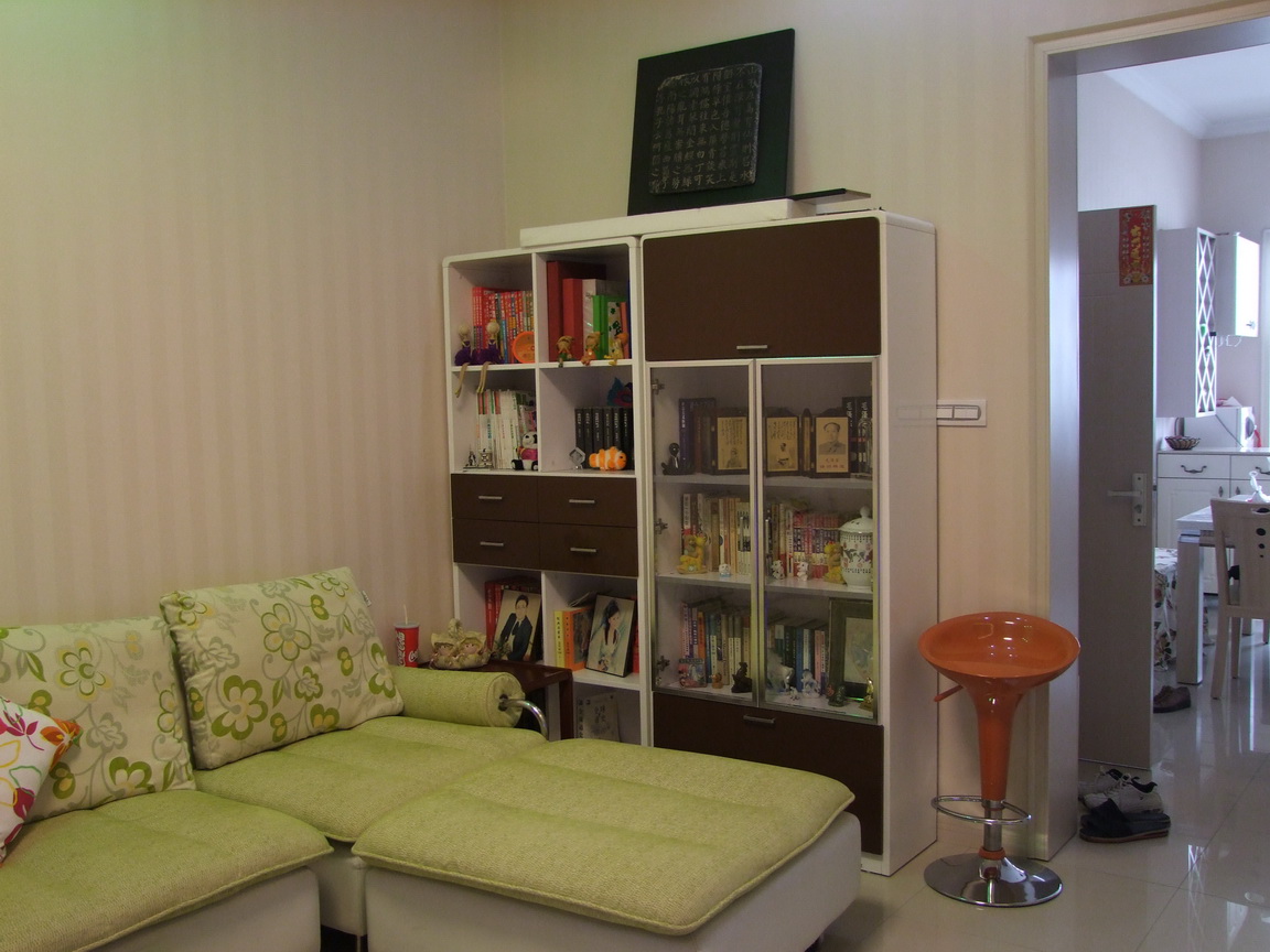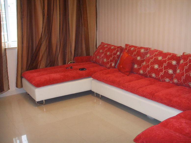 沙发买的时候,是红色的,冬天用,后又做了一套绿色的布艺,夏天用,比较清新凉快。茶几也是淘宝买的,很喜欢的木质的方茶几!