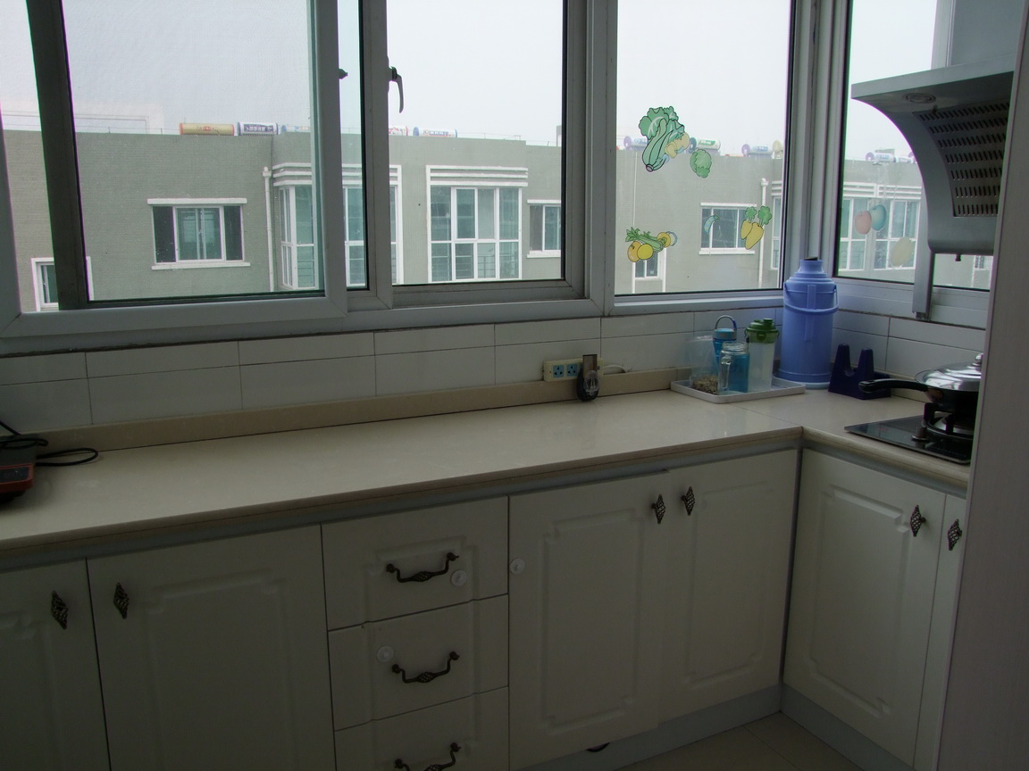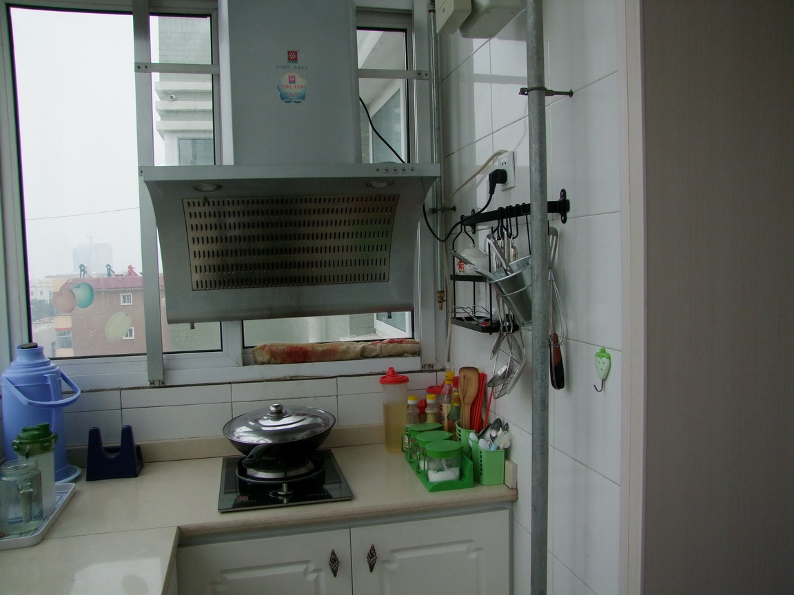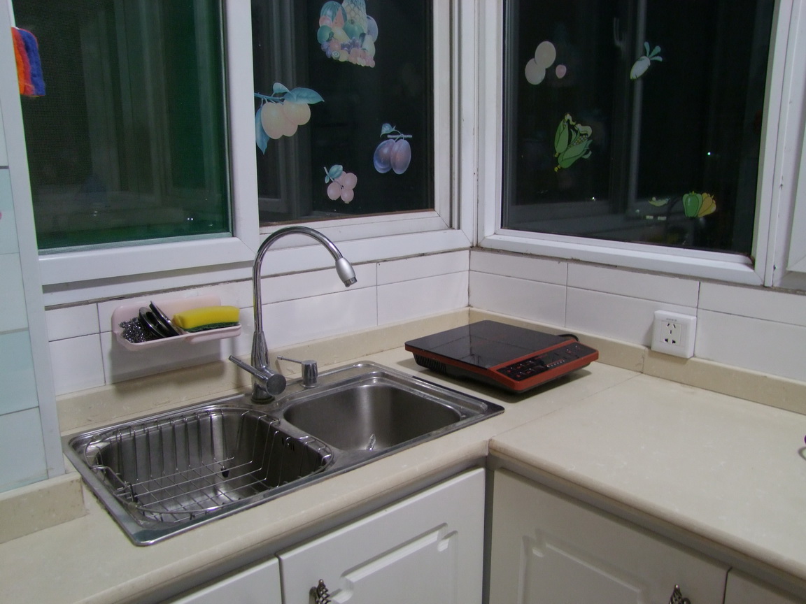厨房的抽油烟机、煤气灶、水槽,还有铁艺的挂件,橱柜门上的把手,都是淘宝上买的。