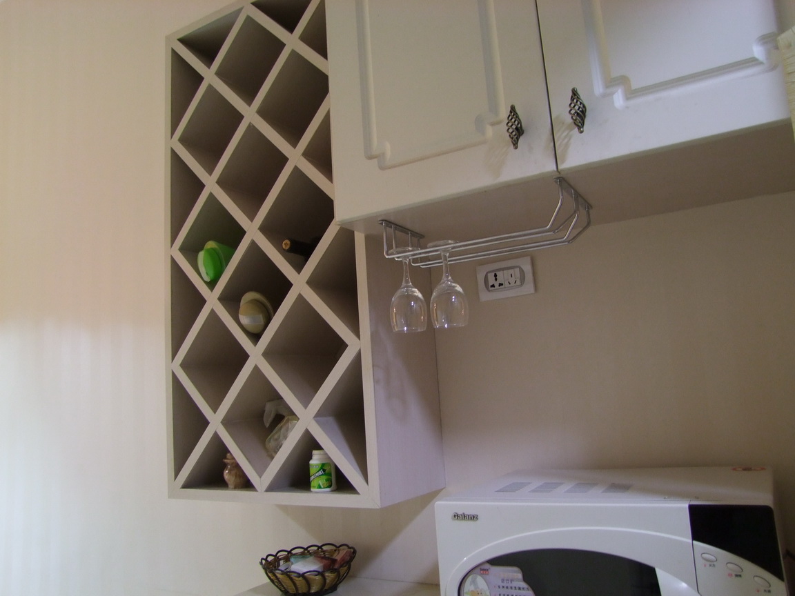 吧台上面的酒柜的造型,很别致,我很喜欢。