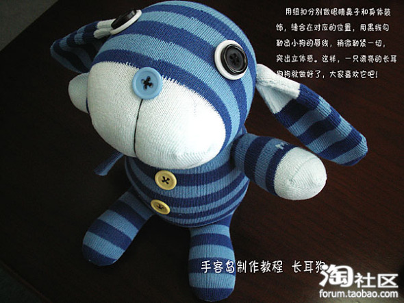 将纽扣对应面部和身体缝上,一只可爱的长耳狗狗就这样诞生了!