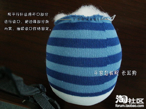 用平行针法收口,抽紧时将边缘部分内窝,藏在里边,抽紧打结.