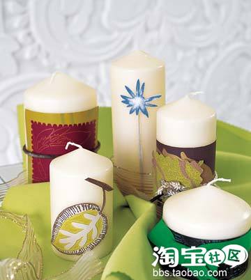 给蜡烛贴上漂亮的墙纸,缀上鲜活生动的图案,瞬间就让原本单调的蜡烛有了艺术气质。自然主义大行其道的今天,藤蔓、花朵、向日葵等自然元素都可以在蜡烛上优雅回归。