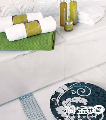 营造优雅、温馨的浴室环境,用精致、素雅的防水壁纸打底,是理想的捷径。为了与卫浴间中的瓷砖、马赛克相配搭,特别给健康秤穿上灰白相间的花外衣,冰冷的空间立刻充满温情。