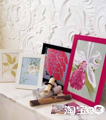 蓝天、白云、藤蔓、花朵,在这一季优雅回归。取材于自然的装饰图案往往经久不衰,将花朵图案的壁纸放入相框可以成为家居装饰品,在享受自然主义风情的同时,明艳的五彩相框更能为空间制造清新气氛。