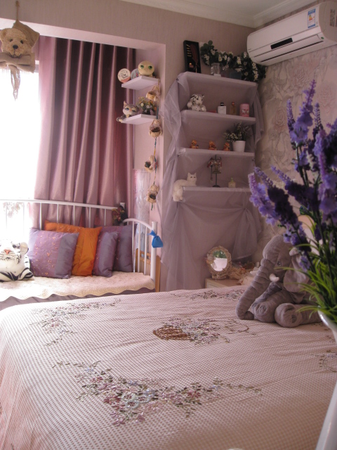 我的床是1.5米的,也是东方百盛的,下面有个巨大的储物空间,床垫是在宜家买的原价2000多呢,搞活动时特价只要半价,超级舒服!床品是岩缝的,出口欧洲的!还有我最爱的象象!