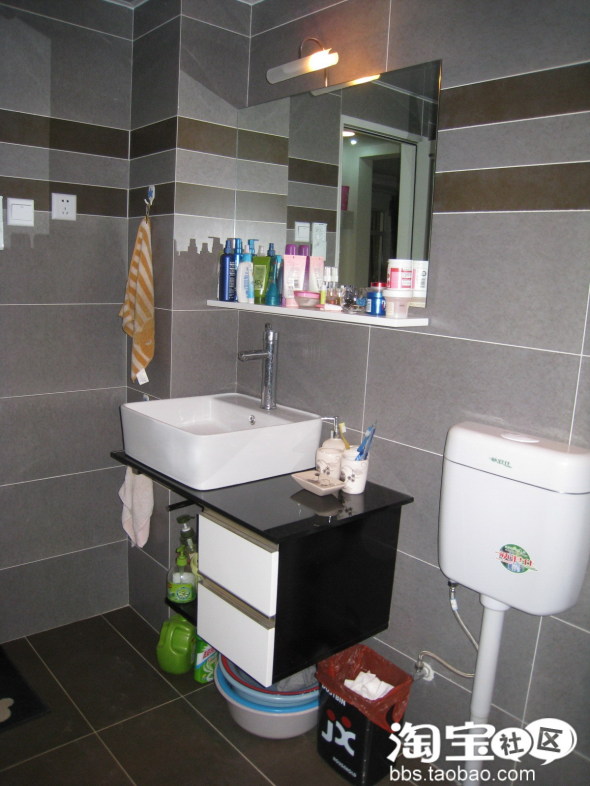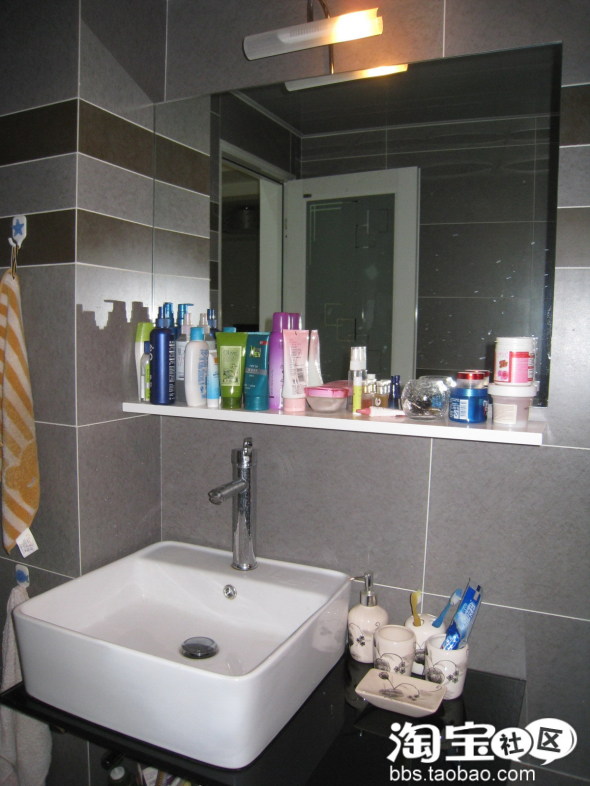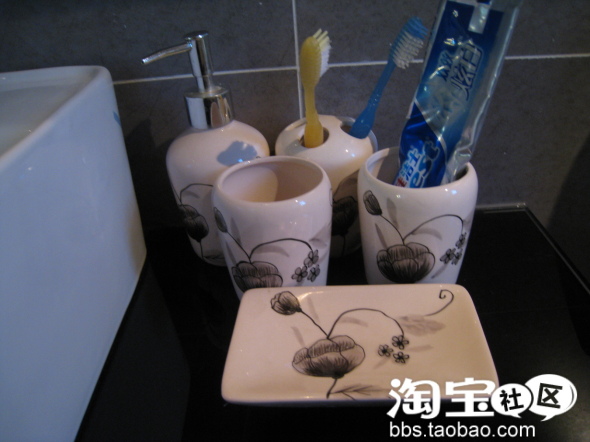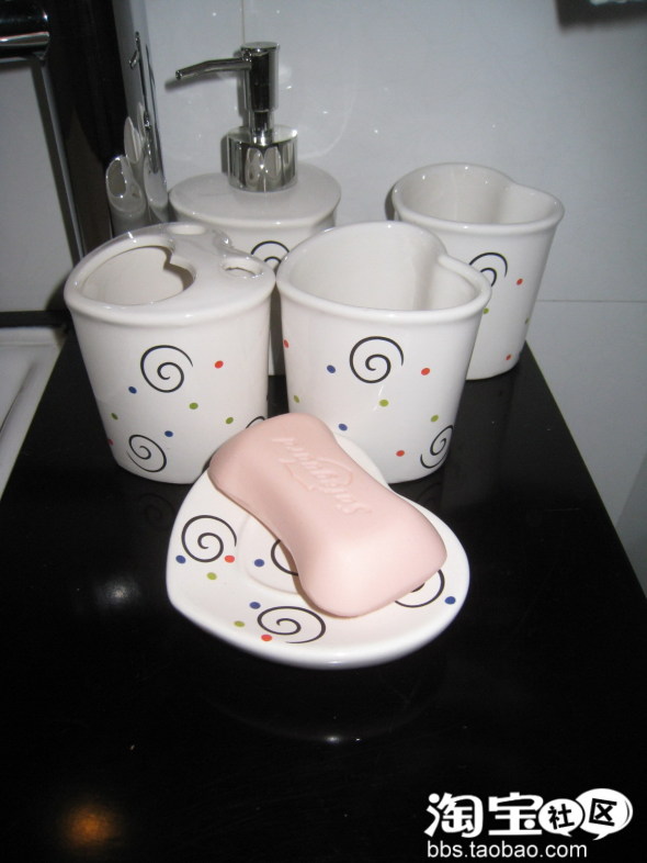 看到卫浴柜上的洗漱5件套了吧~~哈哈 很好看呢,也是在网上淘到呢!http://item.taobao.com/item.htm?id=3508224986店主花太红