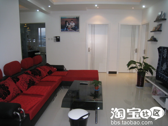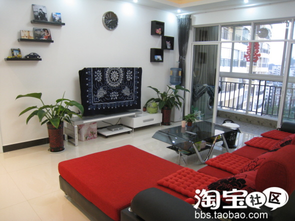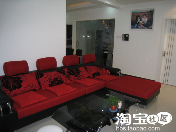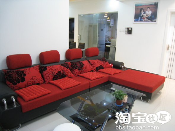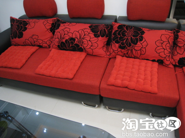 沙发上的4个红色的垫子也是在网上淘来,虽然作用起的不是很大,但是和我的沙发的颜色很配.http://item.taobao.com/item.htm?id=3977316013店主zs0371306