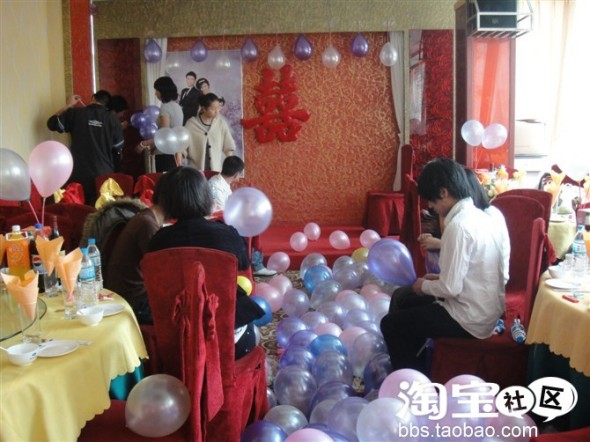 用自己网购来的气球,自己动手布置婚宴的现场~~·哈哈