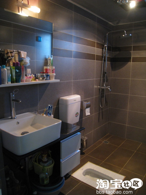 次卫呢卫浴柜是在网上淘来呢!还带镜前灯哦!次卫的整体颜色也是我和老公一起选呢!卫浴柜的黑色白色的搭配是我们的最爱!卫浴柜是在“爱家卫浴建材超市”这个网店购买呢,http://item.taobao.com/item.htm?id=3100045827店主是爱家卫浴建材超市,很喜欢呢 不错 !