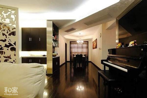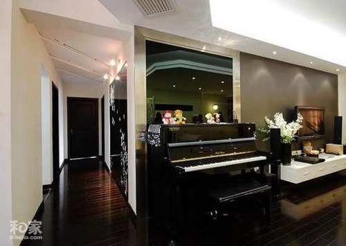 从中间过道往里看,位于客厅电视墙隔壁的钢琴,光看着都觉得琴声悠然而起了.....