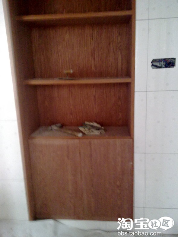 阳台柜子的门,那个白色的是厕所和厨房的扣板,我和我妈超不喜欢,我和我妈就想买方铝扣板,那种银灰色细拉丝的,可是老爸为了省钱,就买了这种老式的扣板。。。。