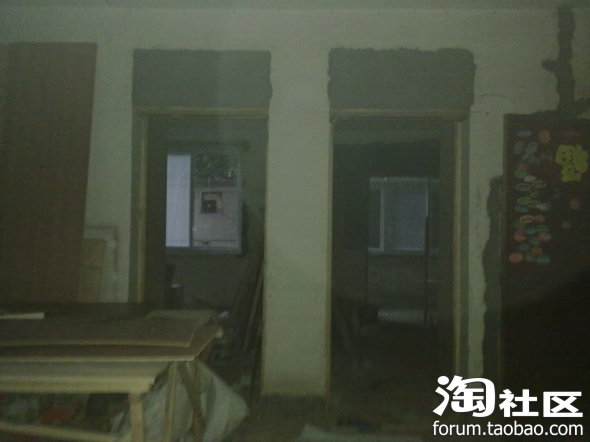 两个卧室门,门上那两块黑乎乎的是以前的窗子,现在用砖块砌了,封了