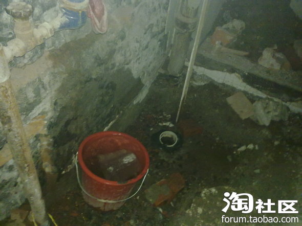 厕所里的水管已经埋好了,图片右下角两个白色的小圆圈就是用来堵水管里的水的(还没买水龙头)
