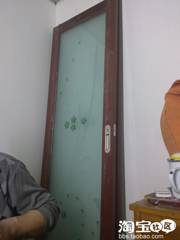 厕所和洗漱间的门,这个还挺满意的270元/㎡,由于怕装修师傅把门搞坏了就把门搬到家里了,这是在吃晚饭时拍的,叫老爸躲着点,还是把他给拍进去了。。。。