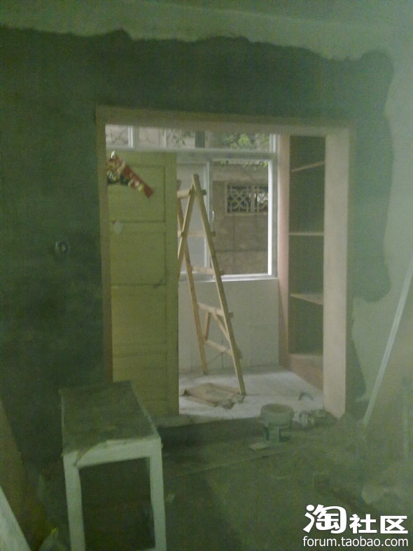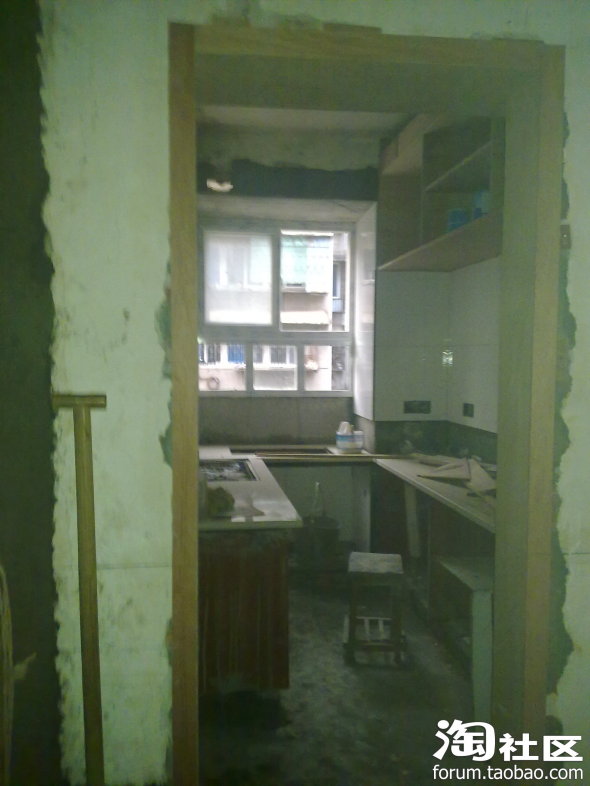 这是从客厅从新开的到厨房的门,厨房照一张,瞧那个窗子,里面还有钢筋,我爸妈好舍不得的,还拿去卖了钱