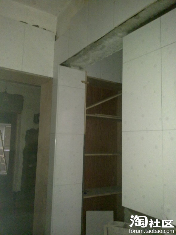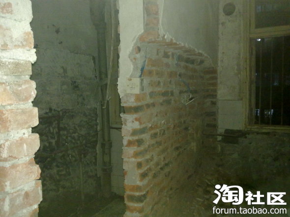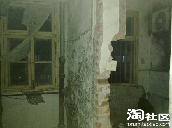 4月1日,装修师傅们就进场了,感觉效率挺高的,下班回来就发现强都被敲了,这是厨房和厕所的那段墙,被敲得只有巴掌大了: