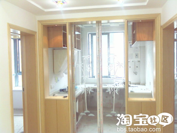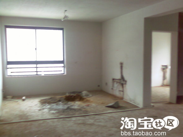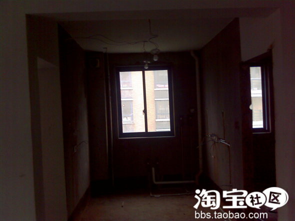 这张图片拍的不好,是用手机拍的啦!这是站在上一张两个门口拍的,左边是书房,右边是浴室,中间是厨房,没有什么好说的,装修好再讲了。