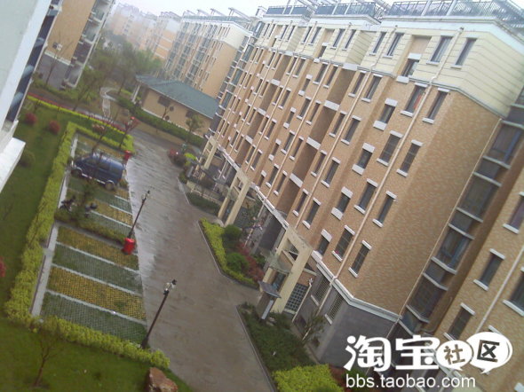 这是我站在阳台上拍摄的雨中的小区,环境还算好,就是车位少了点,如果以后买车了,大家都有钱买车了,我的车停哪边啊???