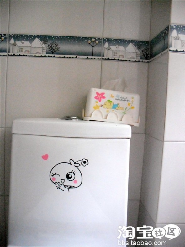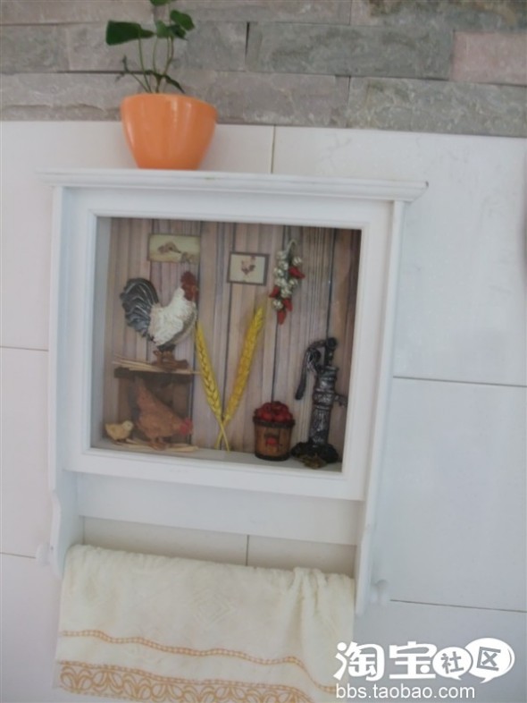 洗手台 镜子 开关罩 和那幅公鸡早鸣的毛巾架 连水龙头 卫生间标志 也全是淘宝的功劳