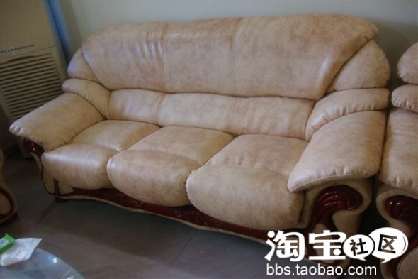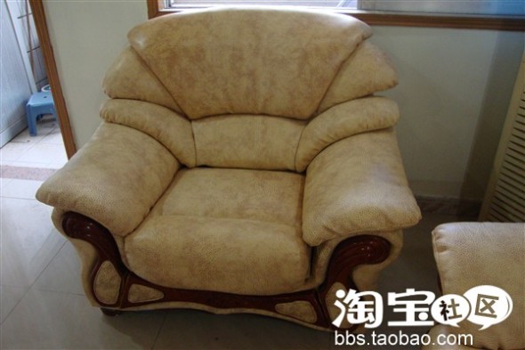 这个沙发是亲戚已经坐了十几年的了~本来外皮都破了,看起来很旧很旧的~