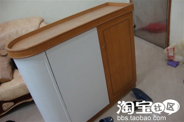鞋柜是本身这个房子就有的,之前是想丢掉重新买的,结果上网一看,喜欢的类型都要700到900块一个,唉,心疼钱呀~三思之后,就在网上买的家具贴把原来的色盖住了,整体效果挺好的,感觉新了很多!!