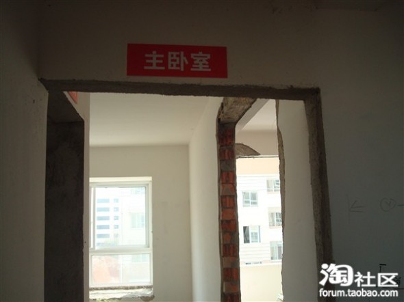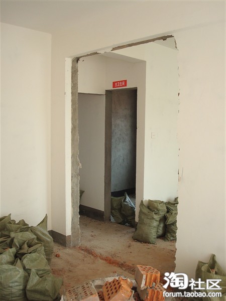 主卧室和次卧室之间开了一个门,准备做个步入式衣帽间。(请忽视地上的建筑垃圾)