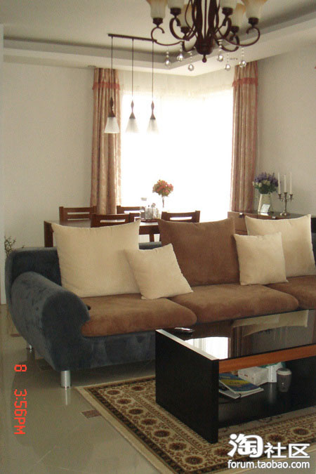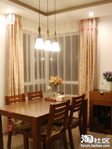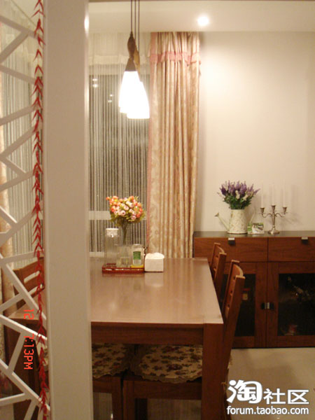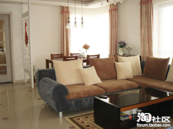 客厅和餐厅连在一起的,中间想用水晶帘隔断,又怕凌乱,以后再考虑吧