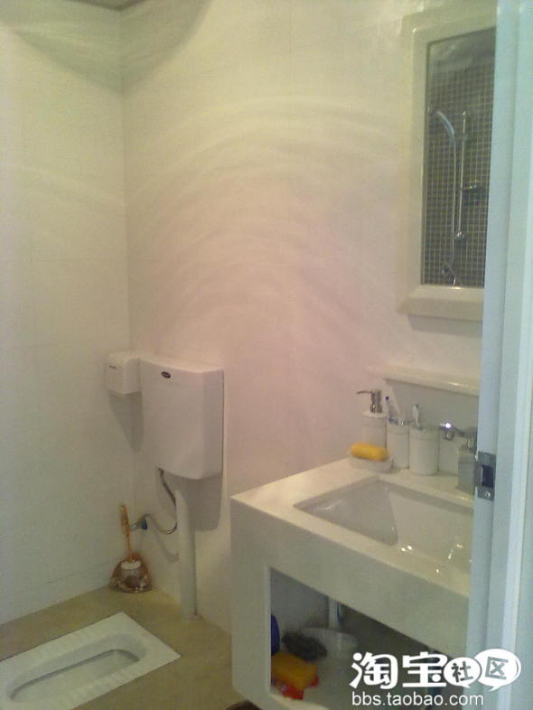 7、卫生间没有采用坐便,是因为老公说还是蹲便舒服,呵呵,也结合节约钱的原因,因此还是安装了蹲便,这个脸盆是我挺喜欢的,颜色和造型都不错,就是偏贵了一点,买成2000多,心疼ING。