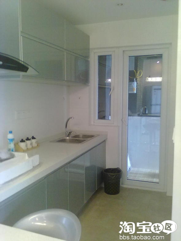 5、我家的厨房比较小,好在还挺方正的,因此橱柜没花太多的钱,橱柜的颜色我蛮喜欢,是那种银灰,这种颜色不容易看见灰尘,打扫起来也挺容易。