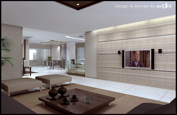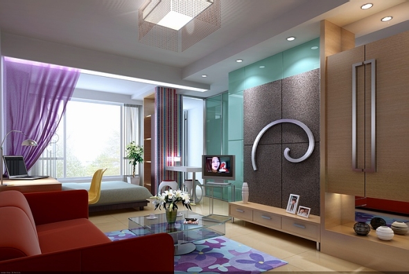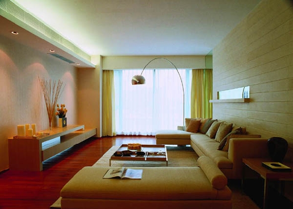 一般客厅都会有大的采光口采自然光,自然光的采用设计和原本的房子结构很大关系。
