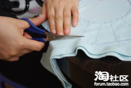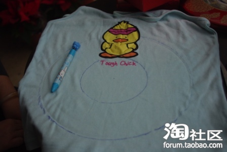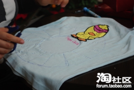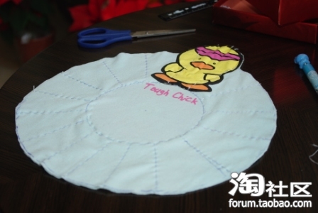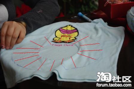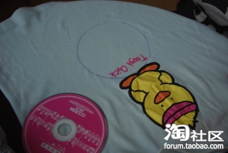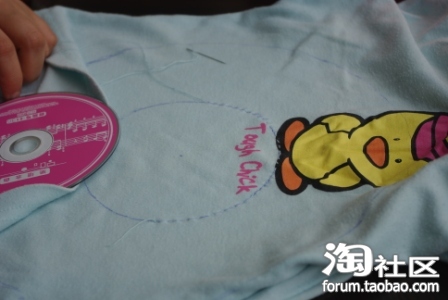第一步:用CD碟在衣服正中间画个圆(小圆)。