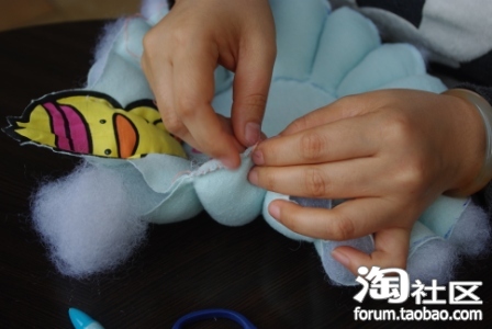第七步:塞棉花(记得要塞饱满,这样才能撑起~~)