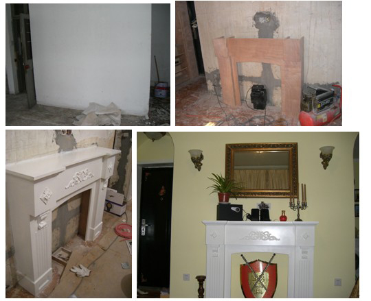 我最最引以为豪的,由本人亲自设计并在网上订做的壁炉出现了~!!撒花~~~~ 本来我想在壁炉下面摆上一大堆花的,可老公说他一个大老爷们儿天天花团锦簇的太别扭了,所以就听他一回~放上他挑的盾牌好了~~ 其实还有点儿武士风范哈~