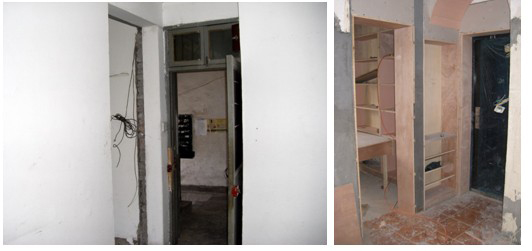 客厅里最为不堪的一面墙,继续沿用在墙里挖柜子的招数~~