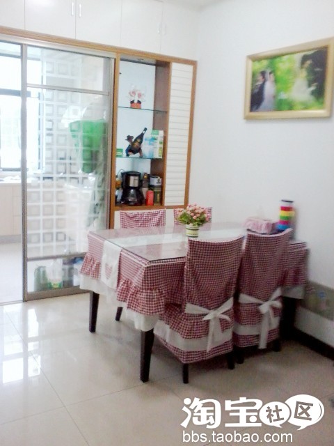 餐桌,桌布椅套是在淘宝买的,椅套220,送了一个桌旗,和一个田园抱枕,还包邮的,我好喜欢啊