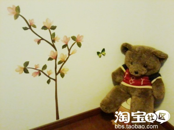 蝴蝶墙贴是在淘宝买的,记不清价格了,很久了,好像很便宜