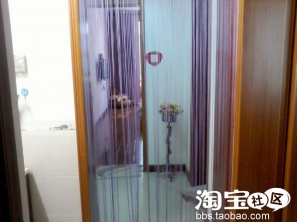 走道一角,里面是洗脸间,线帘,19元,紫色的,很喜欢