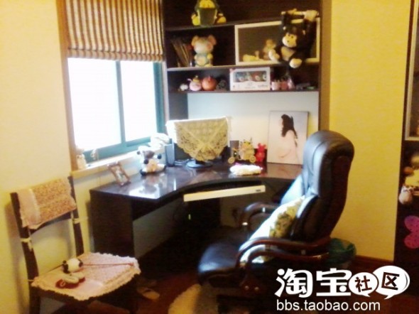 书房,这样看清楚多了吧,不喜欢书柜的颜色,有些老气,喜欢浅色的,尤其是白色,可是当时买的时候对这方面还没有什么感觉,所以一切都没有拿主意啦