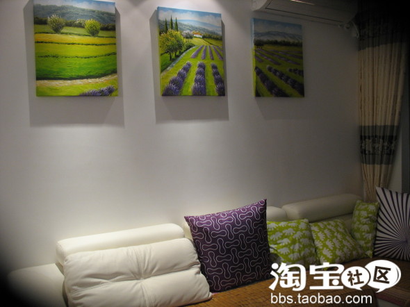 门厅链接客厅的过道。过道比较长,买了3个发散的灯点缀一下。右边墙上一幅十字绣(黄色的大橙子)本来想挂着跟门框平行的。定钉子了只能这样了