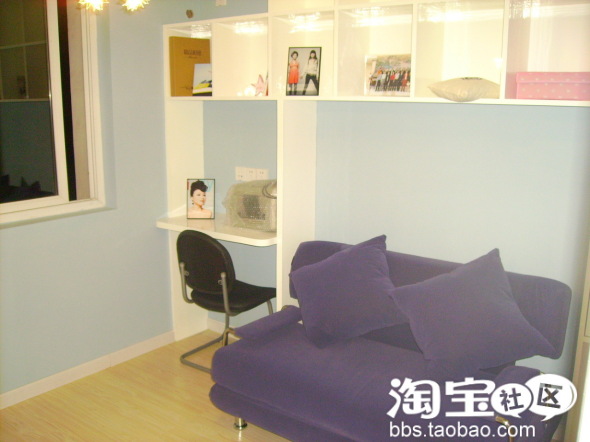 次卧,很简单,全部用的淡蓝色的。次卧的灯和沙发床也是购于淘宝的。。哈哈