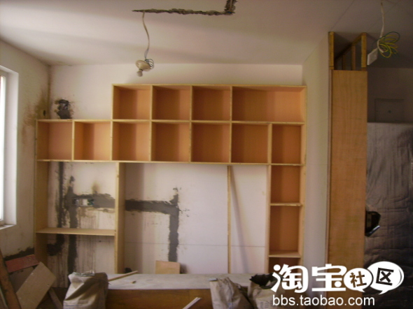 木工做的次卧书柜,中间是我预留的沙发床位置