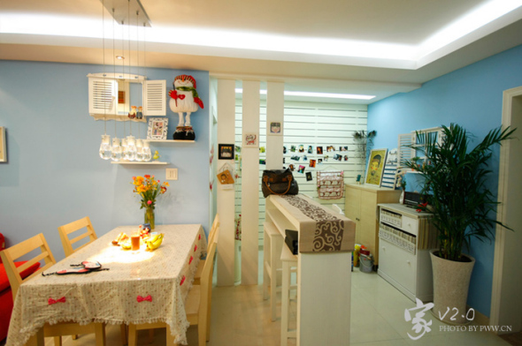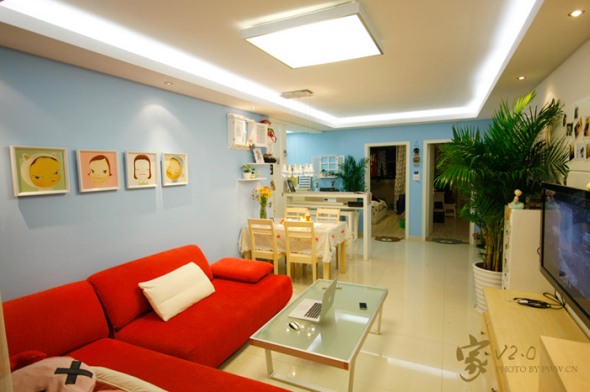 其实一年前已经装修过一次,一年后觉得色彩有些单调,于是就和老婆折腾了几天,将原先的单一的白色,改成了蓝白搭配,显得色彩丰富一些,又在进门的地方,做了个木墙,增加一些层次感,而且还贴了很多平时拍的,几年下来的一些照片,搞得像小展厅一样了。晚上整理了一下,拍一组客厅和书房的上来,请大家欣赏.....