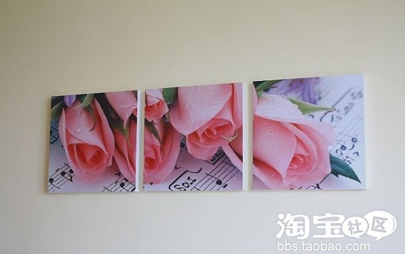 玫瑰无框画,很田园的味道,我把它挂在床对面的墙上,每天醒来睁开眼睛,看到的总是这束娇嫩的玫瑰。